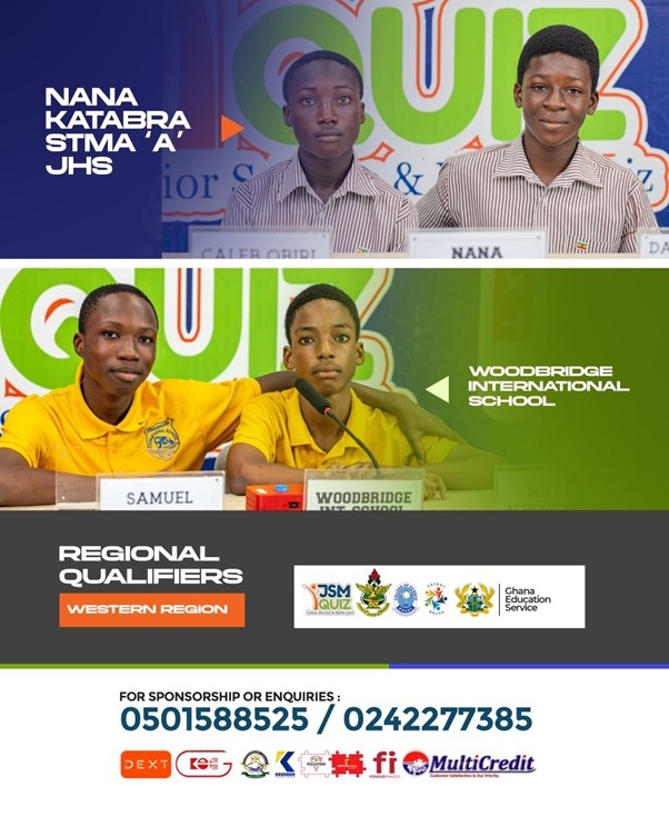 Nana Katabra STMA ‘A’ Junior High School and Woodbridge International School have secured spots to represent the Western Region at the 2025 Junior Science and Maths Quiz (JSMQ) slated for Kumasi at KNUST.