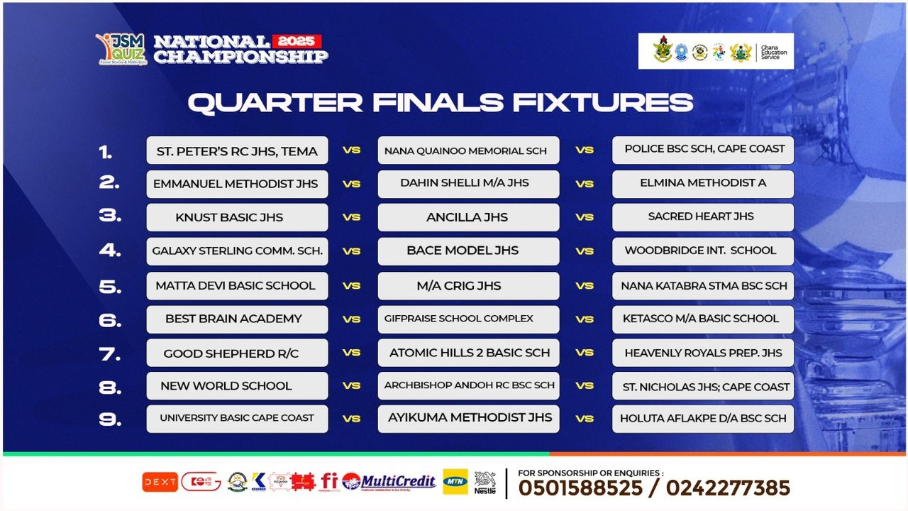The quarter-final fixtures for the JSMQ 2025 National Championship have officially been announced, following a transparent balloting process coordinated by Derrick Boakye Kyei of EricDec Ghana.