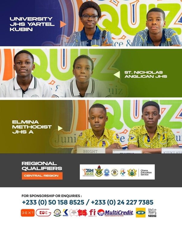 University JHS Yartel Kubin, St. Nicholas Anglican JHS and Elmina Methodist JHS ‘A’ have booked their seat in the Nationals of the 2025 Junior Science and Mathematics Quiz (JSMQ).